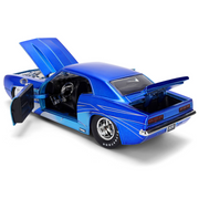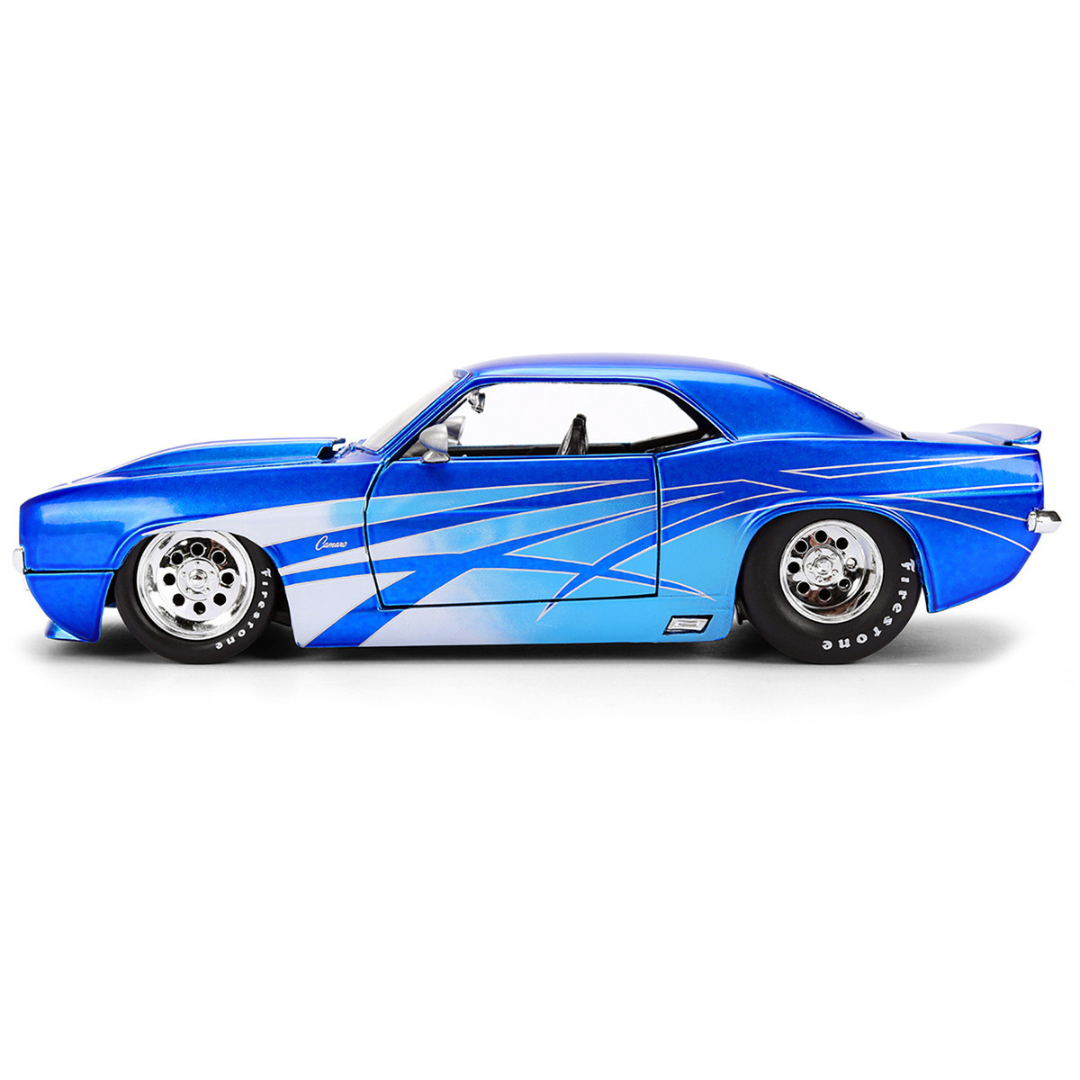 Brand new 1/24 scale diecast car model of 1969 Chevrolet Camaro Candy Blue with Graphics "Bigtime Muscle" Series diecast model car by Jada.