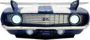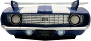 1969 Chevrolet Camaro SS Floating Wall Shelf, Lemans Blue with White Stripes, 19.5x6x8 inches, Tempered Glass, Battery Powered LED Headlights, Chevy Car Lovers Decor