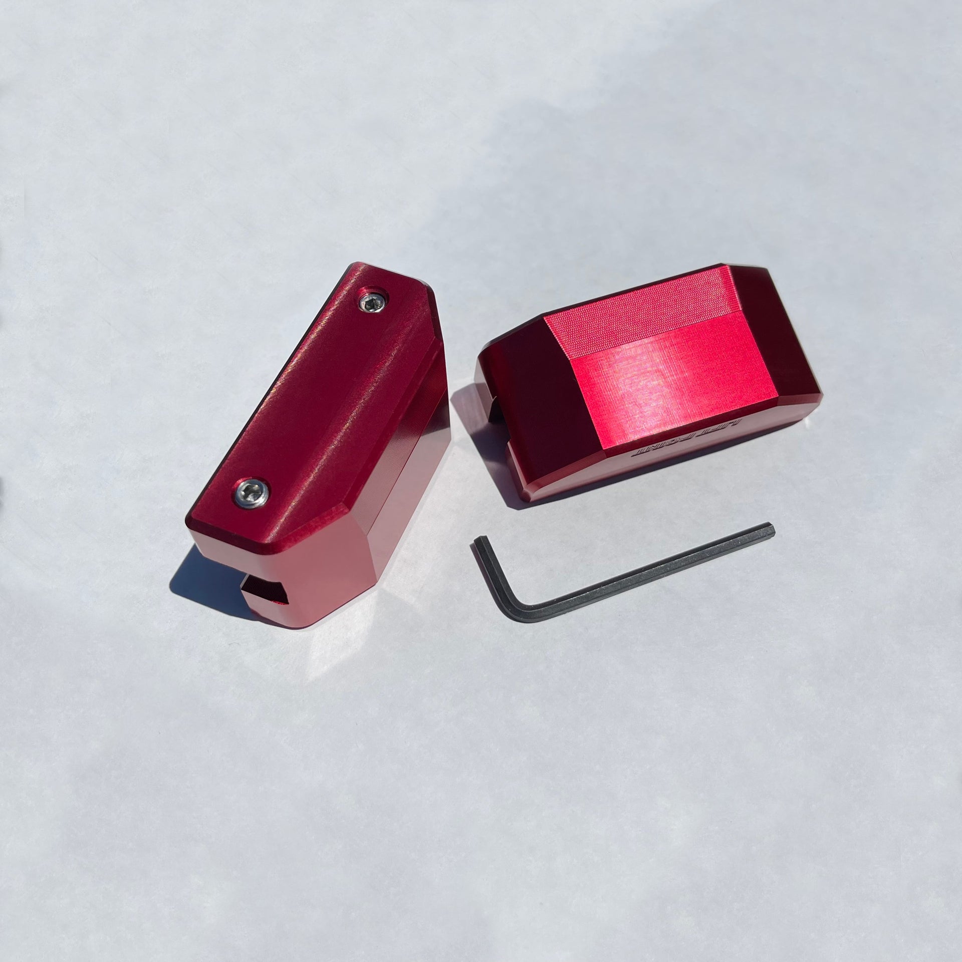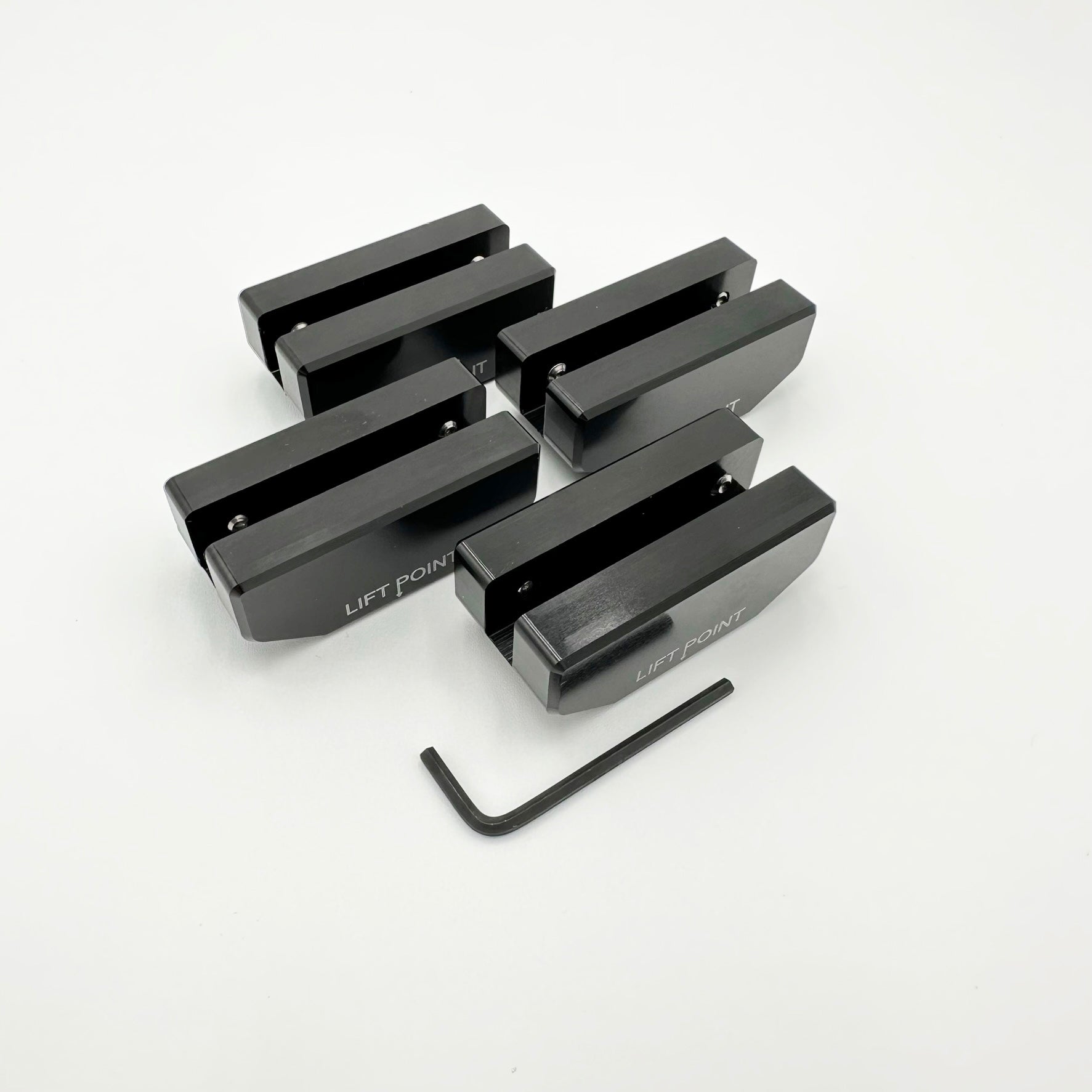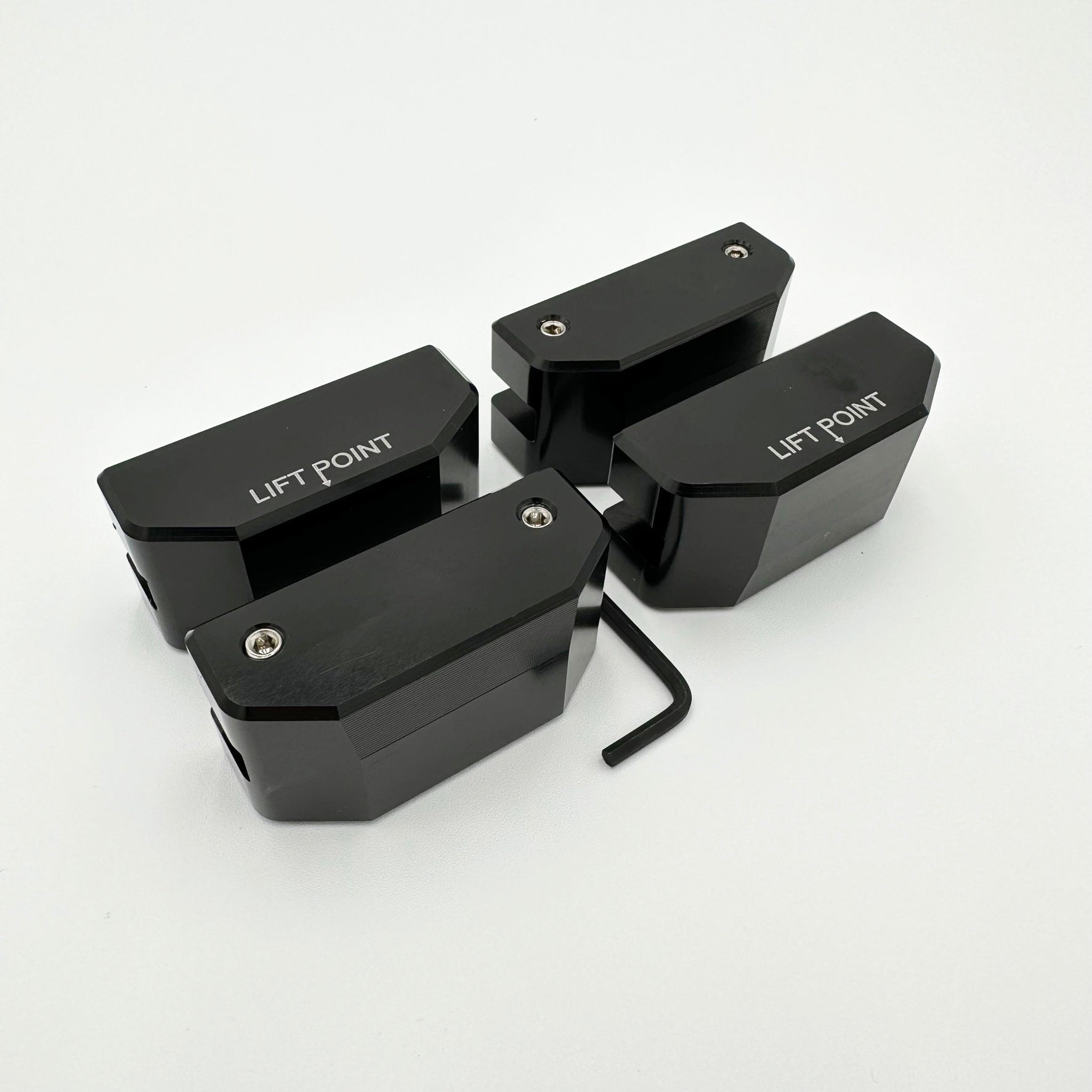 The original bolt-on lift points made in the USA for the 2010-2015 Camaro. Machined from American billet aluminum and designed to be left on the car. The stealth design also incorporates weight savings and a custom design to catch the attention of the mechanic or shop preparing to lift your vehicle. These are angled as to not bend the pinch weld as the car is lifted by a floor jack or lift.