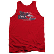 Show off your Chevrolet pride in this sleek and stylish tank top. With the bold "See The USA" graphic on a vibrant red fabric, this tank is perfect for warm days or layering under a jacket.
