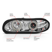 1998-2002 4th Gen. Camaro Projector Halo Headlights Chrome W/RX Halo