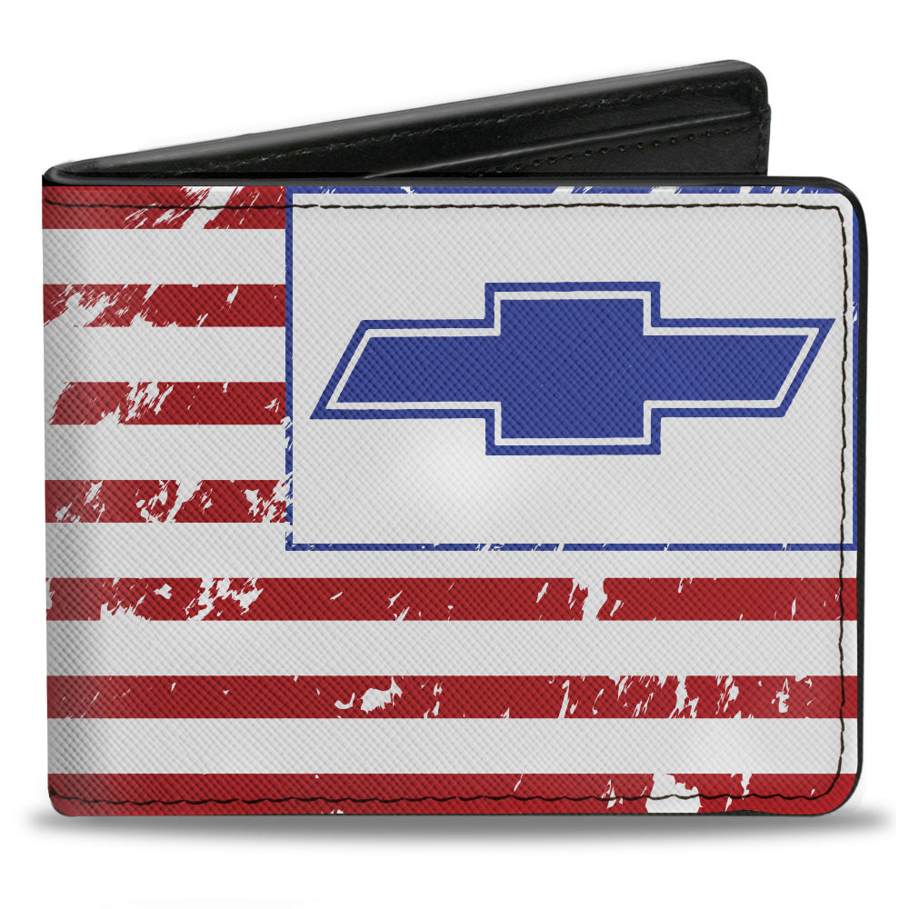 Chevrolet Bowtie American Flag Weathered Red White & Blue Bi-Fold Wallet