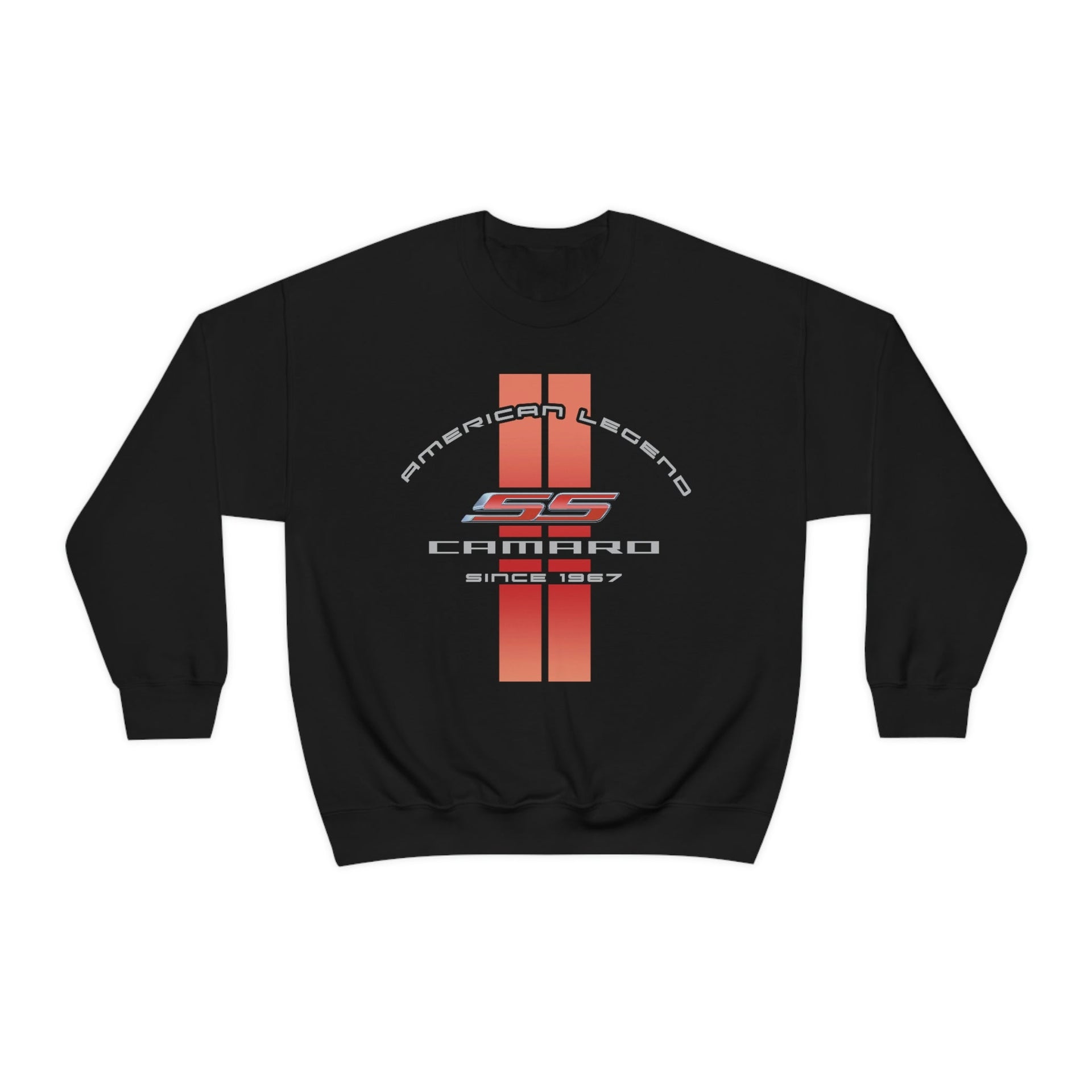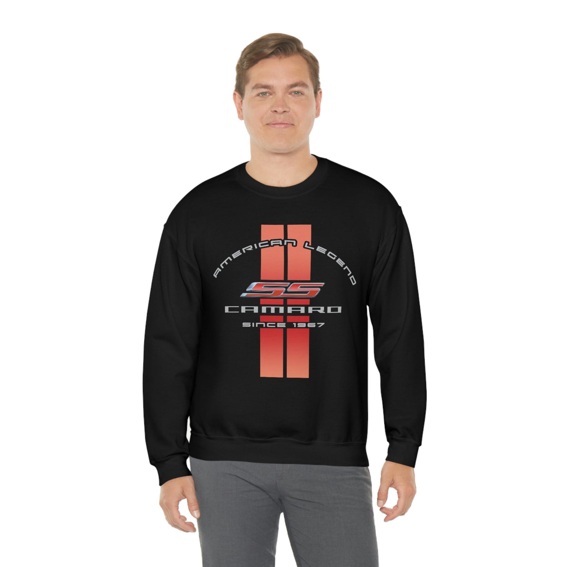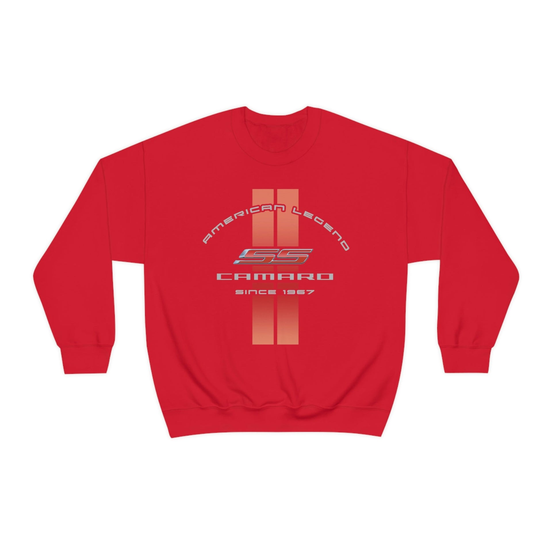 Ideal for any situation, this Camaro 5th Gen SS Red heavy blend crewneck sweatshirt is pure comfort. Chilly days are ahead so get ready to be warm in style! Available in 4 colors with clear crisp printing. These garments are made from polyester and cotton. The collar is ribbed knit, so it retains its shape even after washing.