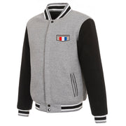 Celebrate classic Camaro style with the Camaro Vintage Logo Reversible Fleece Jacket in black and grey. Made from 100% fleece for warmth and comfort, this versatile jacket reverses to a sleek nylon lining, giving you two looks in one. Both sides feature embroidered Camaro logos, showcasing your passion for the iconic brand.