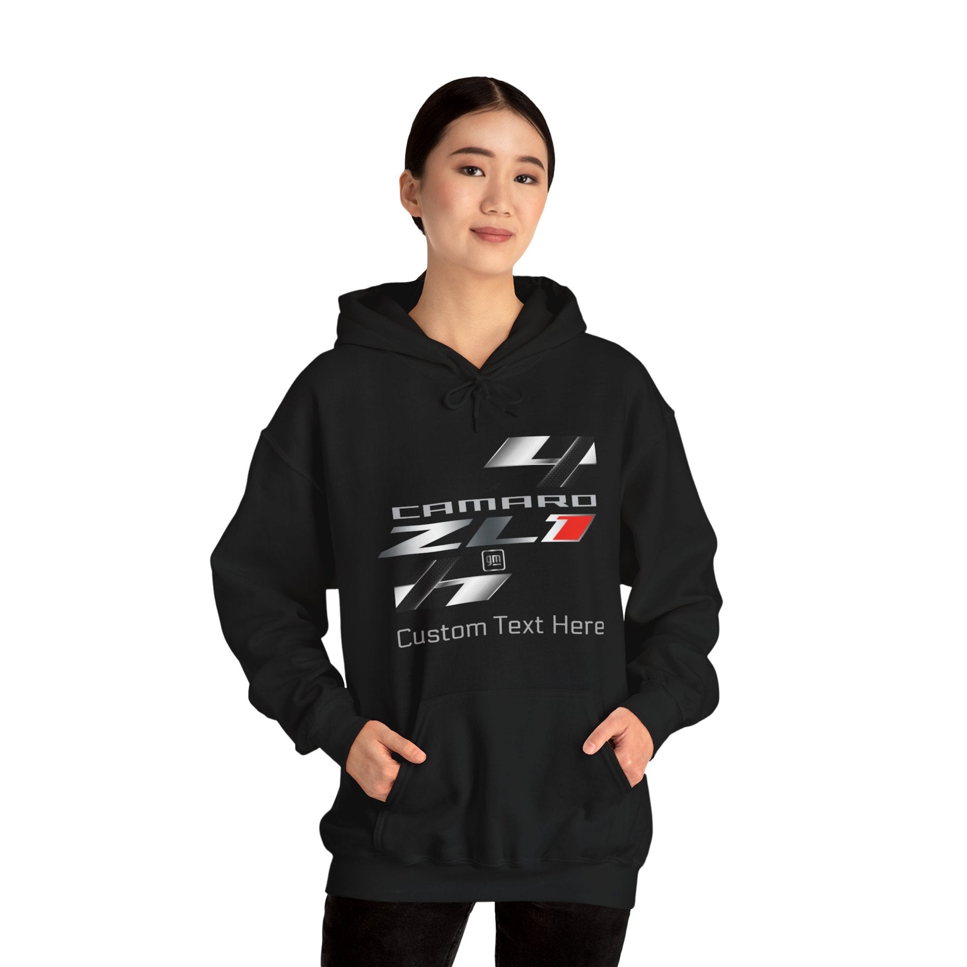 Choose this Camaro ZL1 Personalized Racing Flag Logo Fleece Hoodie and enjoy all it has to offer.This unisex heavy blend hooded sweatshirt is relaxation itself. Made with a thick blend of cotton and polyester, it feels plush, soft and warm, a perfect choice for any cold day. In the front, the spacious kangaroo pocket adds daily practicality while the hood's drawstring is the same color as the bas. It's soft, comfy, and can be easily styled with a pair of jeans and sneakers for a cozy, yet stylish look. Perfect for any Camaro Fan!