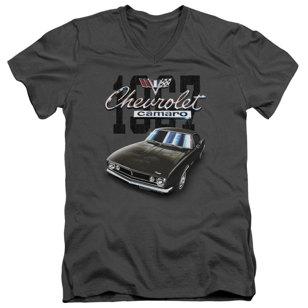 Show your Camaro pride with this officially licensed slim-fit V-neck t-shirt. Designed for a modern, tailored look, this tee features a bold 1967 Camaro Classic graphic on soft, high-quality fabric, making it perfect for any Camaro enthusiast.