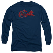 Chevrolet Script Distressed - Adult Long Sleeve T-Shirt (Navy)