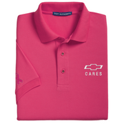 Crafted from a silk-touch cotton blend, this polo offers a luxuriously soft feel with superior wrinkle and shrink resistance, ensuring long-lasting comfort and durability. The design is elevated by a subtle embroidered pink ribbon on the chest—a meaningful reminder of awareness, early detection, and support for those affected.