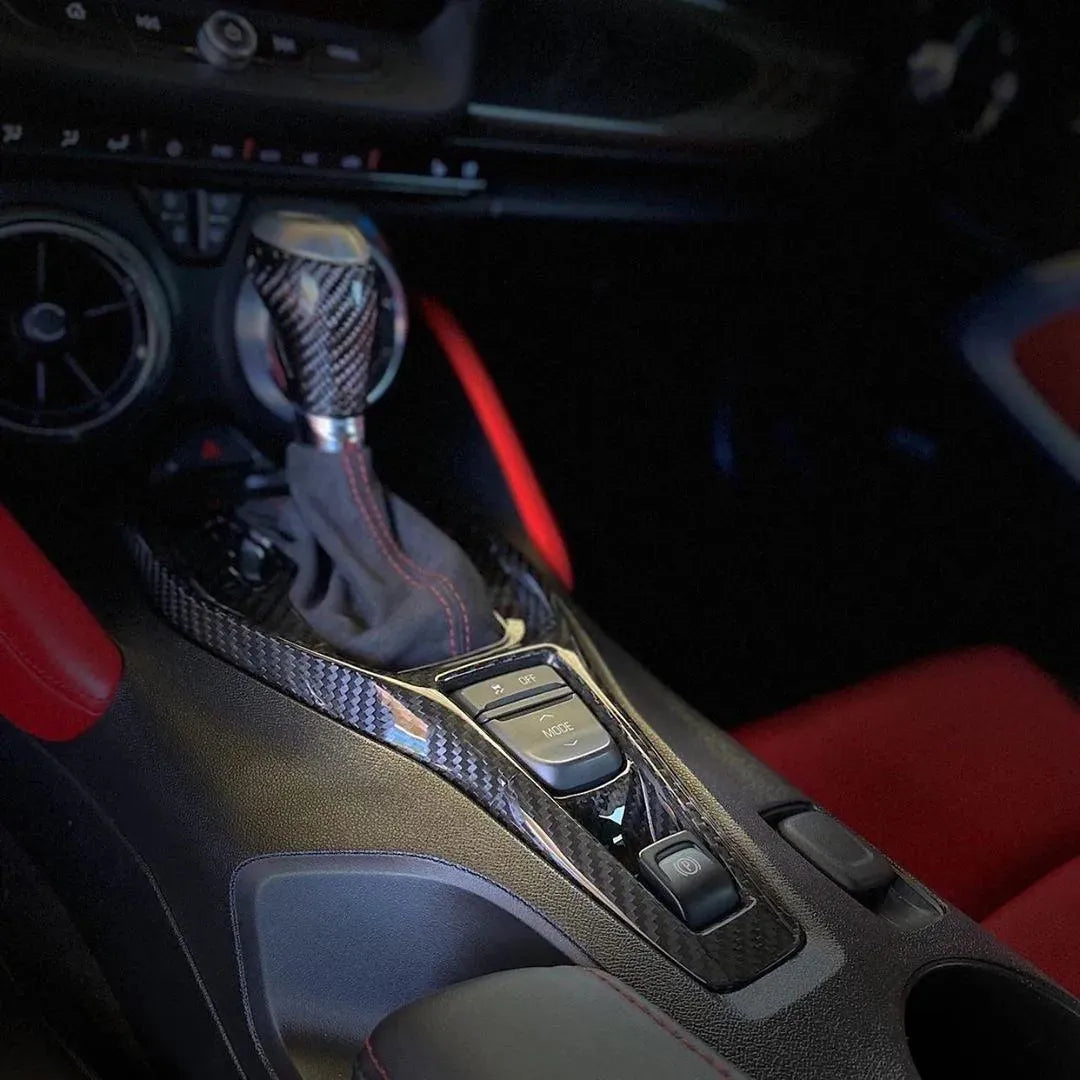 Chevy Camaro 2016-2024 Real Carbon Fiber Gear Shift Chrome Trim Delete Cover
