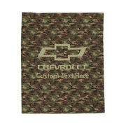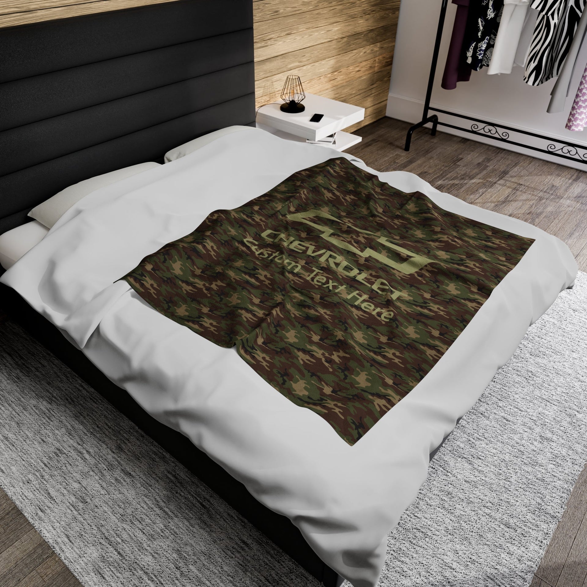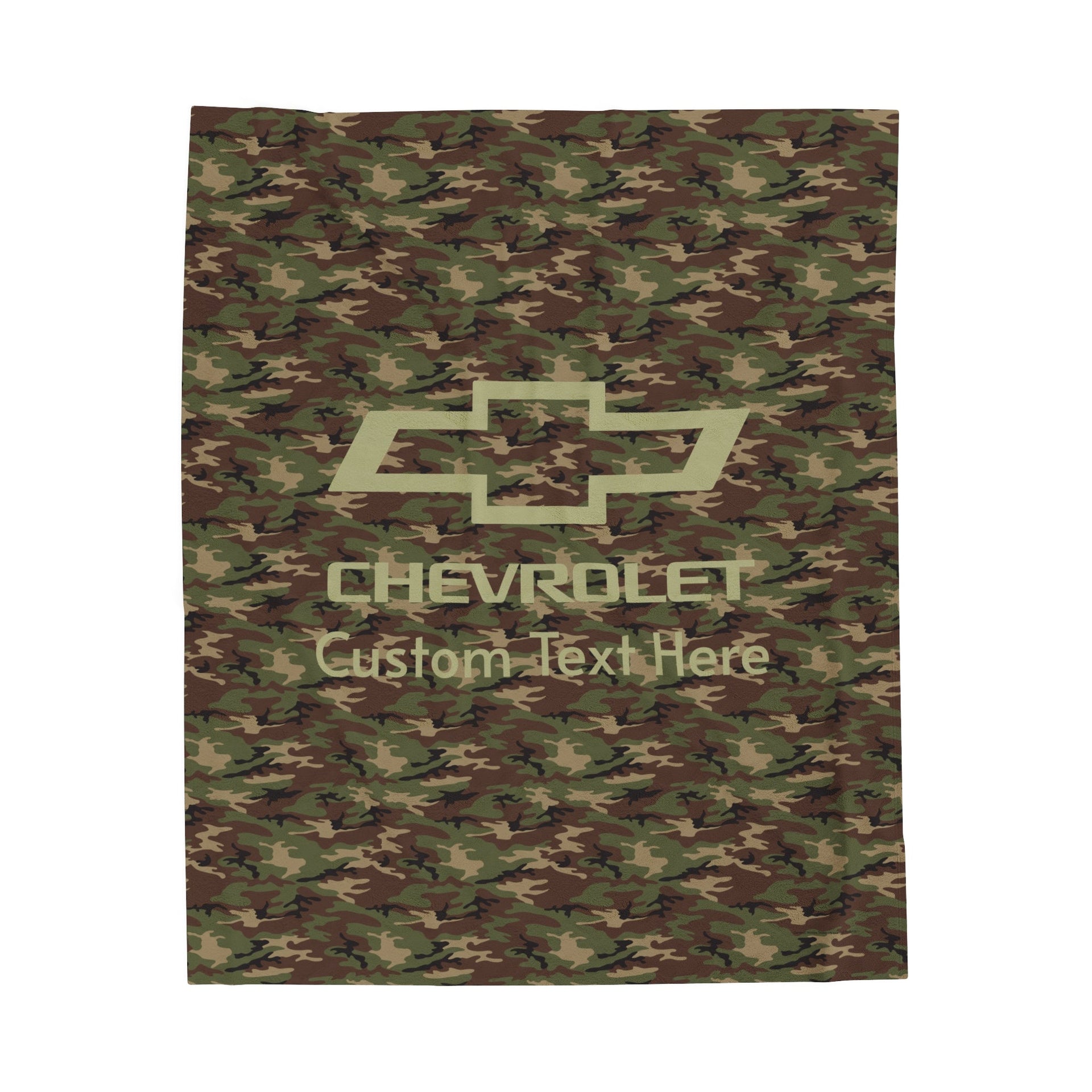 - Personalized Chevrolet Bowtie Camo Print with Custom Text: Customize this blanket with your own text and enjoy the iconic Chevrolet Bowtie camo design, making it an ideal gift for Chevy fans who love a unique touch.