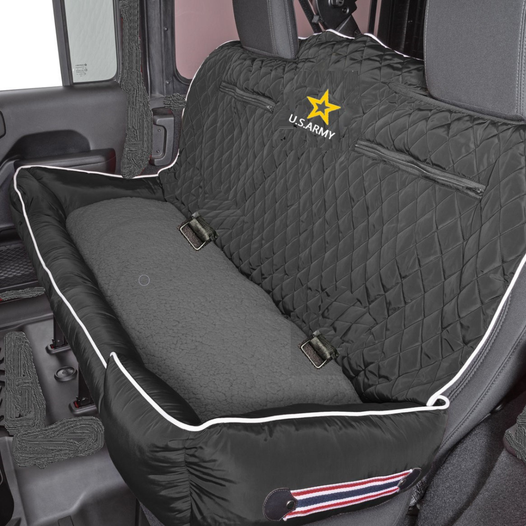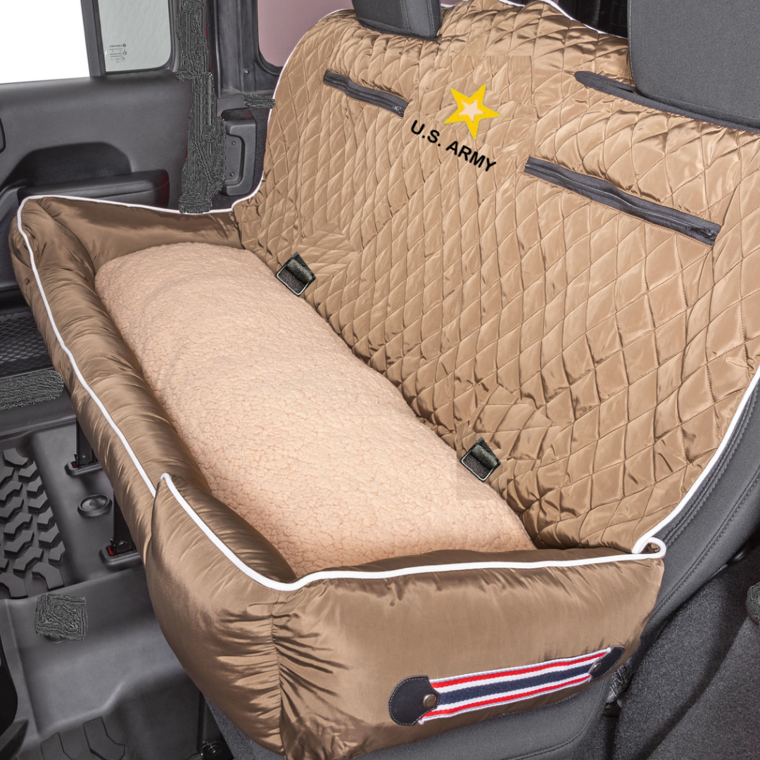 This large U.S. Army Pet Bed And Seat Cover brings comfort and security offered at home into your car when taking your pets for a ride.