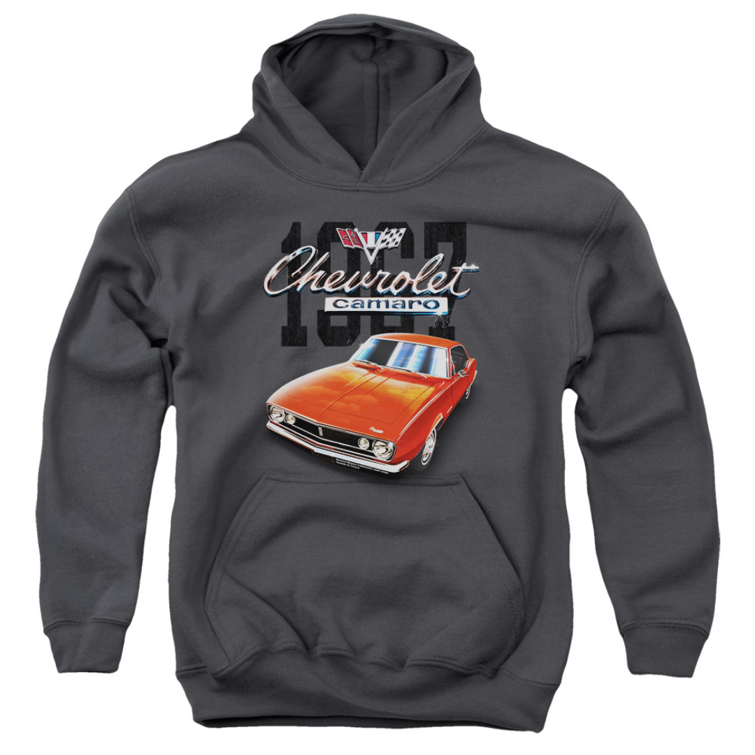 Keep young Camaro fans warm and stylish with this officially licensed youth hoodie. Featuring a bold 1967 Camaro Classic graphic on soft, durable fabric, this pullover sweatshirt is perfect for everyday wear and showing off Camaro pride.