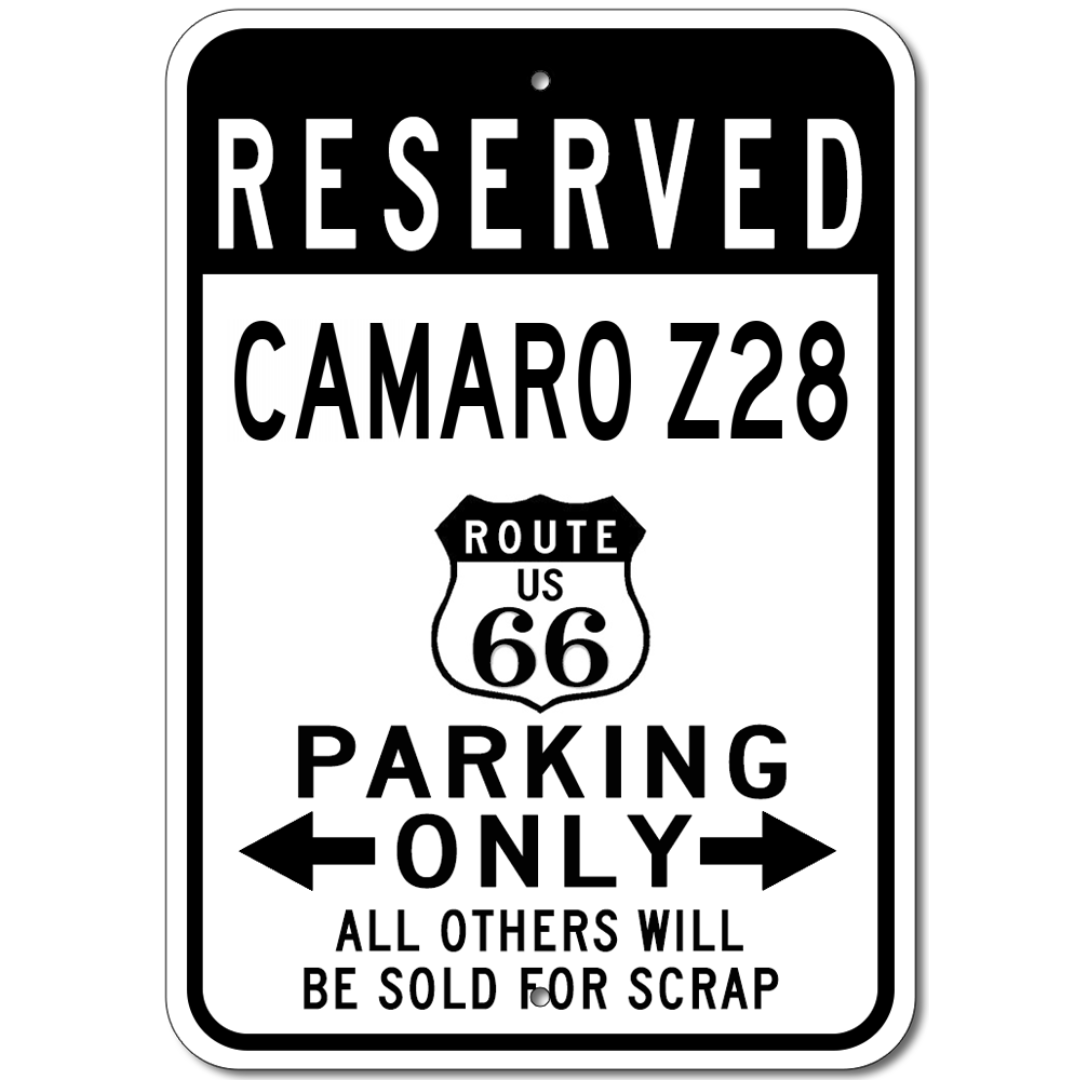Camaro Z28 Route 66 Reserved Parking - Aluminum Sign